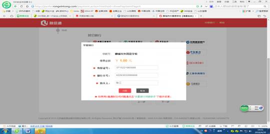 跳转到银行支付界面,按照要求插入网银U盾,输入个人身份证号、银行卡号、持卡人姓名等信息,如下图:
