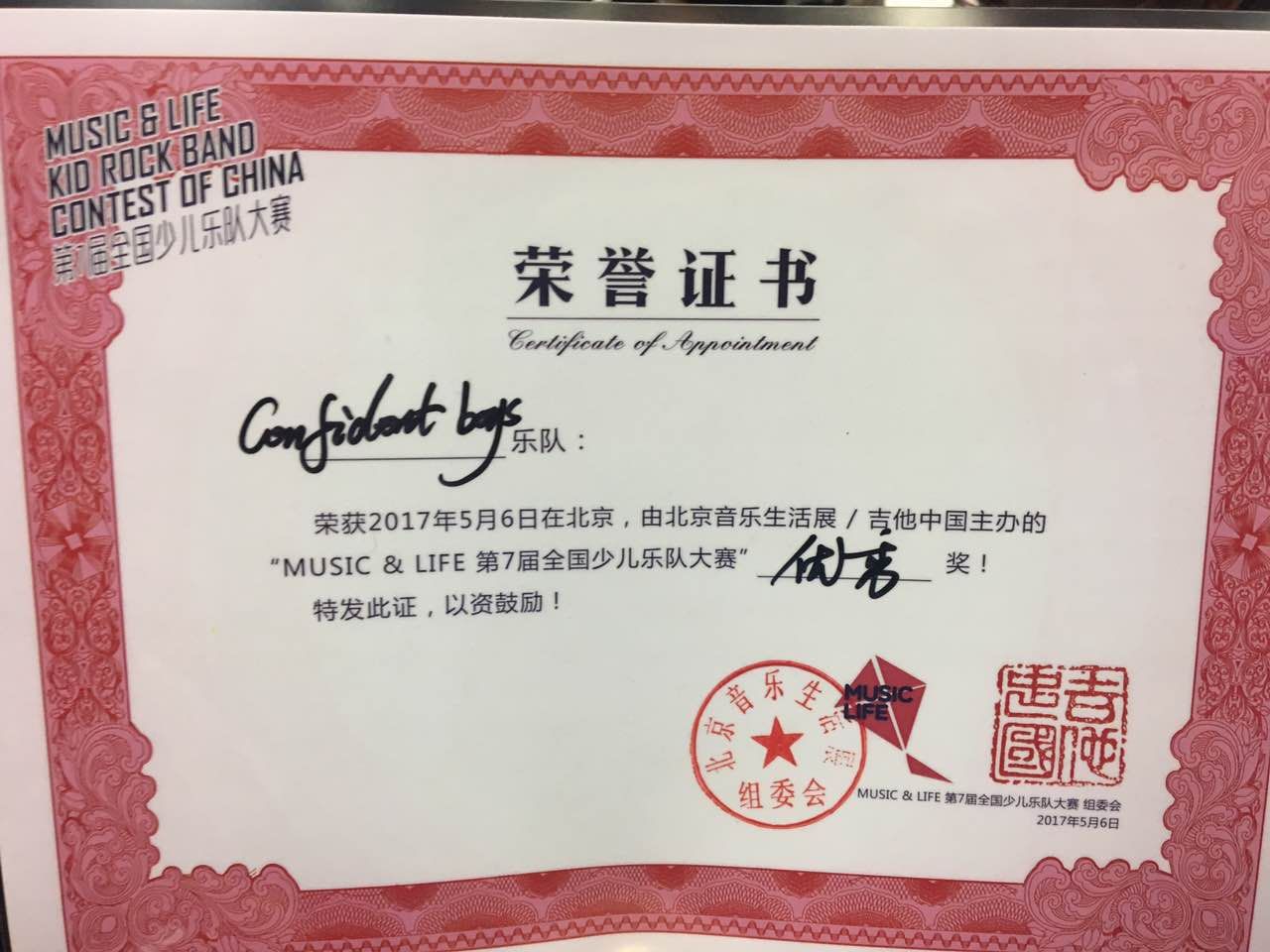 热烈祝贺聊城市外国语初二五班张峻晨同学、初二十一班姚昊阳同学等四人组建的confident boys自信男孩乐队喜获由北京音乐生活展和吉他中国联合主办、九拍音乐教育协办的第七届全国少儿乐队总决赛前十强!下面是比赛花絮