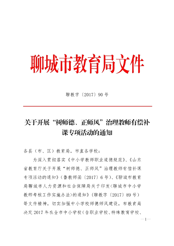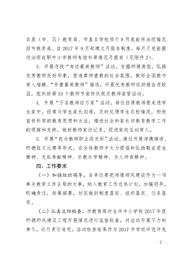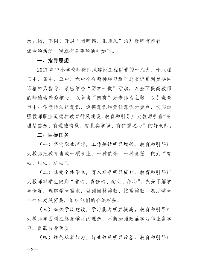 “树师德、正师风”治理教师有偿补课专项活动的通知
