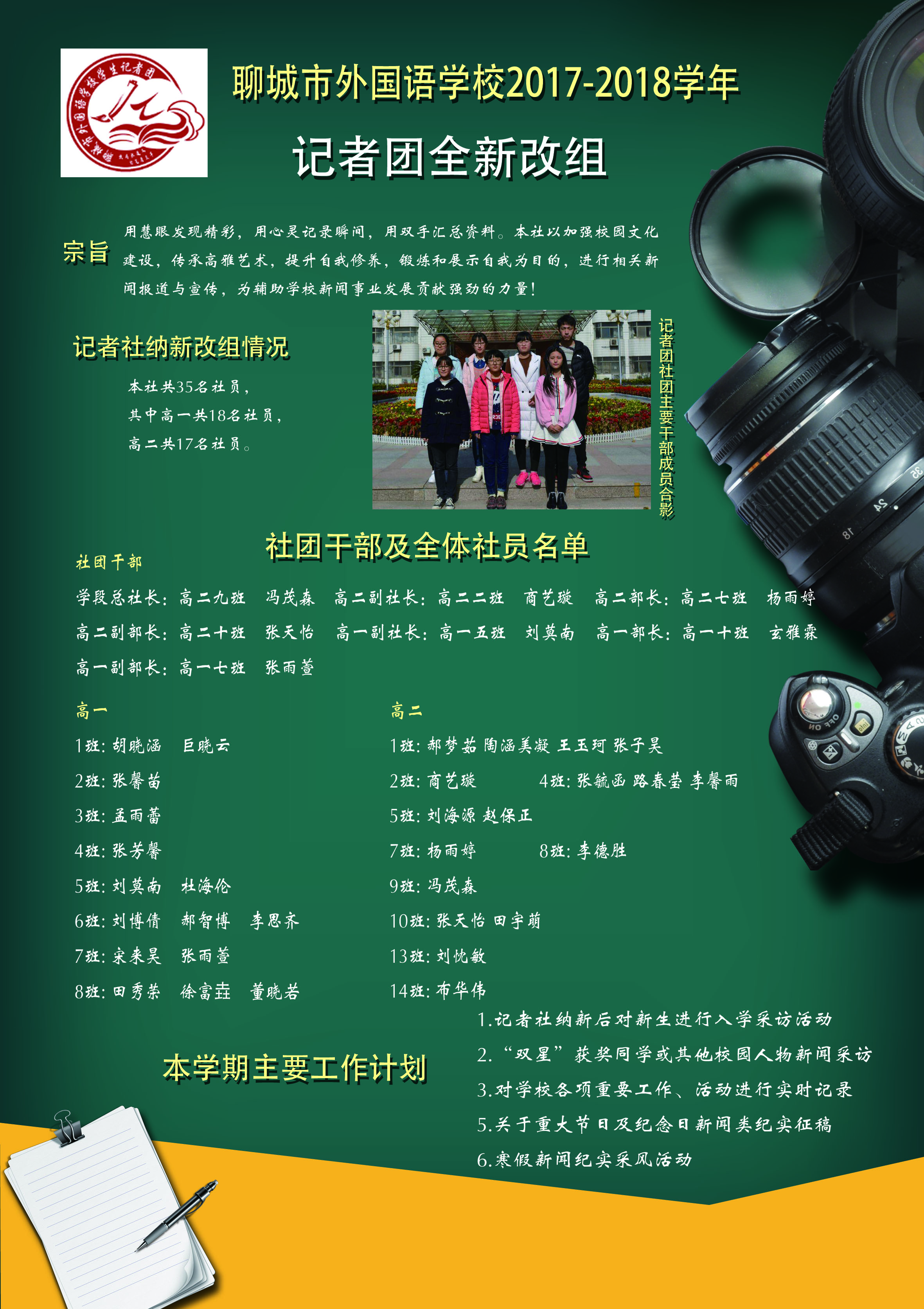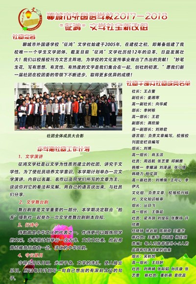 聊城市外国语学校17—18学年高中部团支书及社团