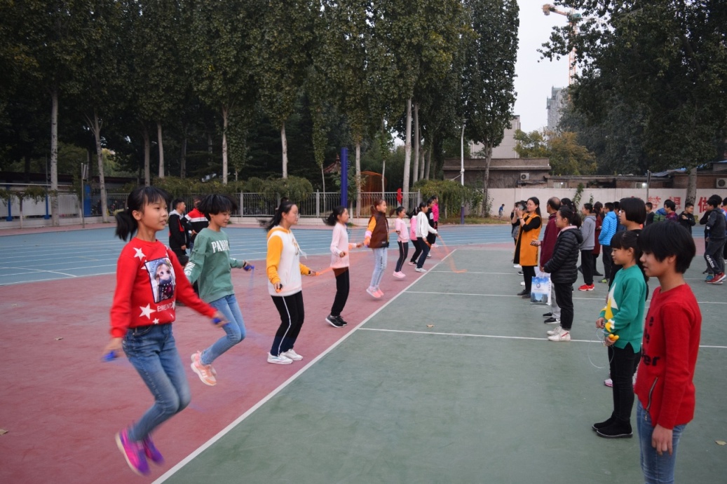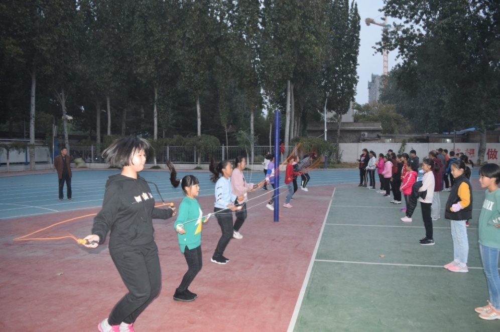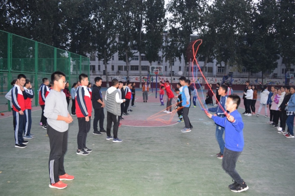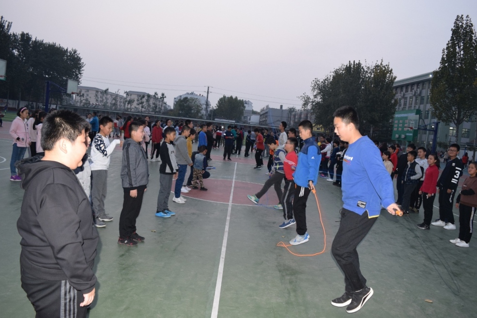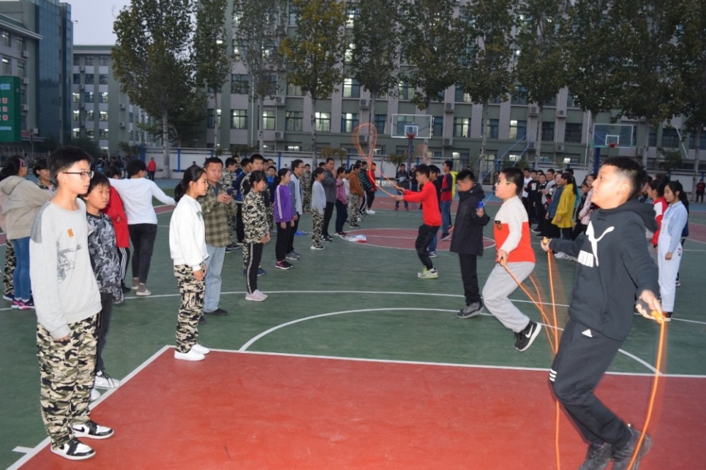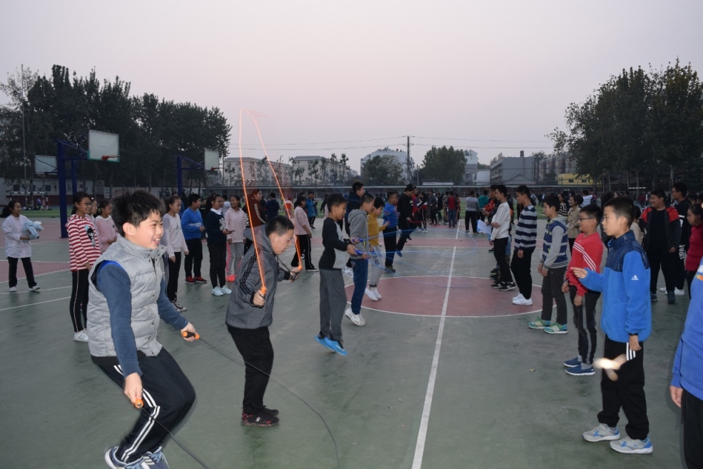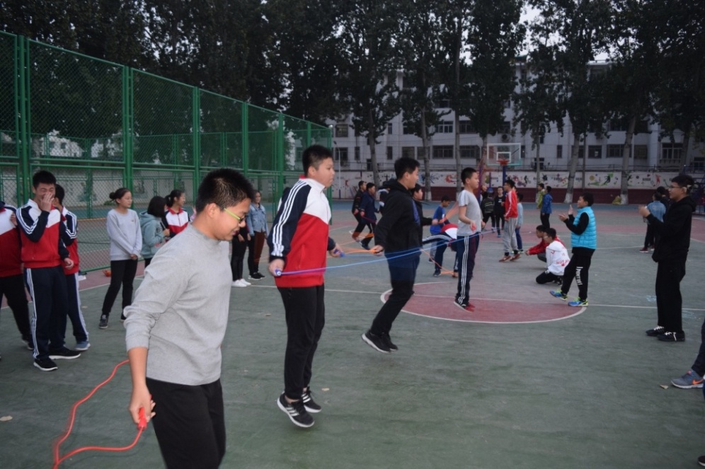 为了全面贯彻树德立人思想,推进素质教育,普及体育运动,丰富学生集体主义精神;增强学生体质,丰富校园文化;提高运动能力,提高运动兴趣,提高班级凝聚力,聊城市外国语学校中学部初一年级于10月22日, 在政教处赵杰茹主任和初一年级杜广刚主任组织下,举行了“展英姿、树自信”跳绳比赛活动。