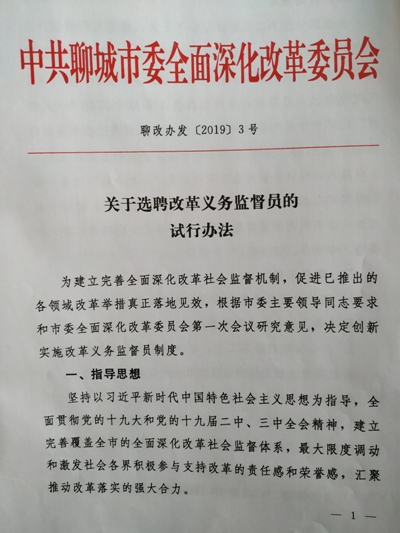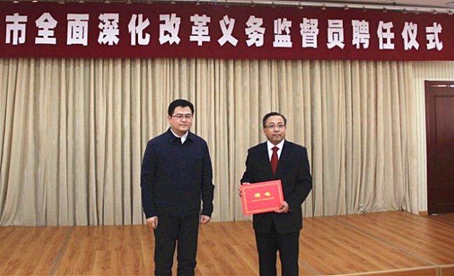 4月3日下午,中共聊城市委全面深化改革委员会改革义务监督员聘任仪式在二所多功能厅举行。市委书记、市委全面深化改革委员会主任孙爱军同志为推选的35名改革义务监督员颁发了聘书。