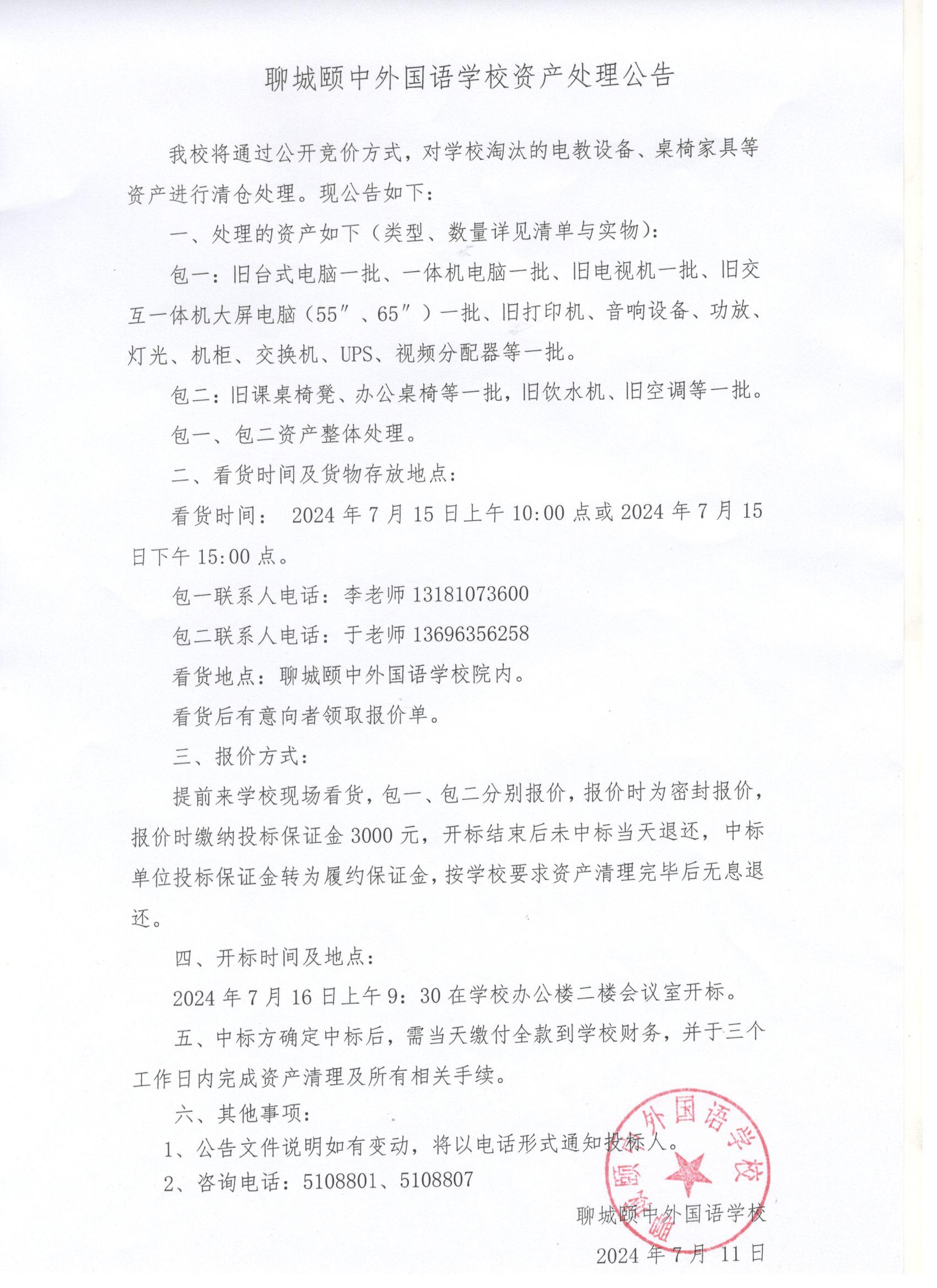 聊城经济技术开发区颐中外国语学校微机室微机及网络设备招标