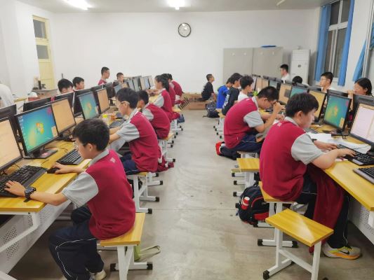 我校初中学段在信息学奥赛培养方面,已走出了一条属于自己的分阶段性全面培养发展之路。起始年级学生参加入门课程Python语言的学习,初步了解编程,并喜欢上编程,提高逻辑思维能力,培养利用计算思维解决实际问题的能力。入门后,学习能力强、编程潜力大的学生转入C++语言学习。由我校奥赛教练崔新峰老师专业指导授课。在注重竞赛知识、能力指导的同时,补充部分数学理论知识,加强思维方法、学习习惯、心态、学习方法、解题或比赛策略的指导或拓展。关注、呵护学生的成长;科学规划苗子、特长生的培养和发展,为学生们的未来发展提供最优规划。