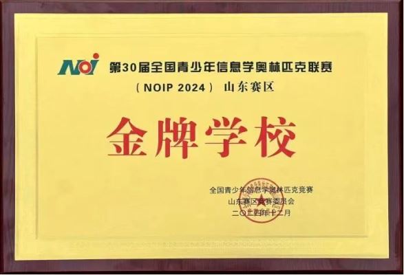 2024年赛事,我校再次被全国青少年信息学奥林匹克竞赛山东赛区竞赛委员会评为信息学“金牌学校”。至此我校已连续五年获得“金牌学校”称号。