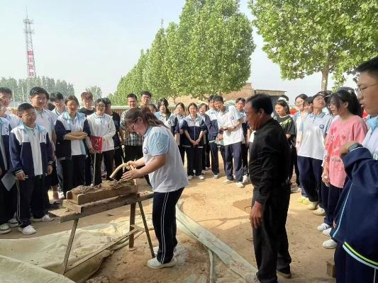 同学们走进贡砖产业园,领略非遗技艺所带来的震撼。临清贡砖通过土、泥、坯、烧四大流程十八道工序制作而成,非遗传承人向大家讲解了临清贡砖的制作技艺、发展历史。在贡砖工艺老师的指导下,同学们纷纷挽起袖口亲自制作贡砖,此刻的泥土通过大家的双手绽放出独特光彩。