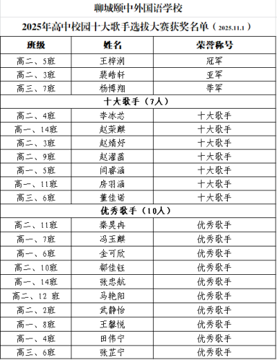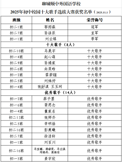 ——聊城颐中外国语学校2025年“校园十大歌手”初高中精彩赛事邀您共赏校园好声音