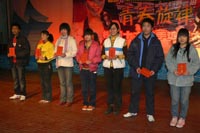名单: “十大歌手”冠军得主 高三(7)班 张 华 《你的眼神》 “十大歌手” 亚军得主 高一(6)班 顾佳琦 《小背篓》 “十大歌手” 季军得主 高二(10)班 王彤冉 《真的爱你》 获“十大歌手”称号的有: 高二(15)班 李 沫 《美人吟》 高二(9)班白雪《wanna be》 高一(10)班 张诗源《小气鬼》 高二(11)班胡希震《倔强》 高二(15)班 路姗姗《心 愿》 高二(4)班韩莹《橄榄树》 高二(12)班 赵欢《隐形的翅膀》 获“最具潜力歌手”称号的有: 高一(3)班徐禄《江南》 高二(9)班马兰君《铁齿铜牙》 高二(14)班张亚楠《遇见》 高一(14)班秦丹《美人鱼》 高一(2)班 李安杨《旋木》