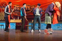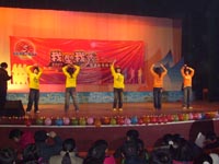 热情,激情,豪情在学校礼堂中激荡;歌声,掌声,欢呼声在东校的夜空里回响! 12月30日学校举行了第5届校园文化艺术节“我型我秀”庆元旦大型文艺晚会。学校党委副书记李荣军、副校长徐继胜及中层领导吴春前、柳阳、蒋光健等观看了节目。19时20分部分同学有秩序地凭票进入学校礼堂,千余人的礼堂座坐无虚席,其他同学则在本班教室观看现场直播。师生同台演出,共同度过了一个美好的夜晚。 19时40分,礼堂内闪烁着眩彩的灯光,强劲的现代舞《cha cha》极大地点燃了观众的热情,顿时,整个礼堂淹没在热烈的掌声和欢呼声中。随着开场舞的定格,两位主持人神采奕奕地登上舞台,在声声祝福中周培培老师的一曲《祖国你好》拉开了晚会的帷幕。整个联欢会高潮迭起,精彩不断,无论是歌曲、相声、诗歌朗诵、二胡独奏、咔腔还是武术表演都博得了大家热烈的掌声,尤其是学生自编自演的小品《师生情》、话剧《大话水浒》、情景剧《我运动我健康》几度掀起汇演的高潮,在博得大家阵阵热烈掌声的同时,引人深思。而老师们带来的歌曲《木鱼石的传说》、《偏偏喜欢你》、《痴心绝对》更是将晚会一次又一次推上高潮的浪尖。文艺汇演浓缩的18个节目全部由政教处主任吴春前带领政教处及各年级组的几位教导员师进行编排。期间,徐继胜校长多次到现场给予慰问与指导。这些节目展示了我校师生的才华与心血,展现了我校师生在学校发展的新起点下朝气蓬勃、锐意进取的精神面貌。 经过政教处半个多月的精心准备,在各年级组、电教中心、总务处等科室、部门的全力合作下,文艺汇演赢得了师生的一致好评。本次汇演既是第5届校园文化艺术节的高潮,也是尾声。在演员们的辛勤努力下,在观众的阵阵掌声中,文艺汇演落下了帷幕,但那high到极至的气氛和活力汇成了冬日一道靓丽的风景线,永远留在我们的心底。值得一提的是,电教中心杨旭东主任在现场督导并带领电教人员克服了技术和设备上的困难,成功地实现了我校文艺节目的首次现场直播,圆满解决了以往因为礼堂座位有限总有部分学生看不到演出的难题。另,根据学生上交的问卷调查,12月31日上午政教处评选出了最受欢迎的4个节目、4个演员、4个节目题材、4个最佳评选观众 |
