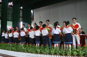 9月10日下午,学校礼堂沉浸在欢乐和喜庆的气氛中。我校庆祝第二十三个教师节暨优秀教师表彰大会在这里举行。我校74名教职工分别荣获“十佳班主任”、“十佳教师”、、“十佳青年教师”、“优秀教师”、“优秀班主任”、“先进教育工作者”等光荣称号。 学校校长崔秀山、党委副书记李荣军、副校长刘士尧、王恒金、武建功、王怀军、徐继胜等领导出席了表彰大会。大会由李荣军书记主持,在激昂的国歌声中拉开帷幕。 伴着优美旋律,两名学生代表深情地朗诵《献给敬爱的老师》为老师献上节日祝福。欢快的乐曲中受表彰的教职工先后走上领奖台,学校领导为他们颁发了荣誉证书,孩子们为他们献上一束束鲜花,表达对老师的敬意。 获得“十佳教师”荣誉称号的孙永前老师在发言中郑重承诺:在今后的教育教学工作中,用爱心塑造学生,用真情感化学生,用榜样激励学生,用人格熏陶学生,扎实工作,开拓创新,无私奉献,以无愧于党和人民的重托,无愧于“教师”这一光荣称号。 热烈的掌声中,学校校长崔秀山做重要讲话。他首先向受表彰的“十佳教师”、“十佳班主任”、“十佳青年教师”、“先进教育工作者”等荣誉称号的老师们表示热烈祝贺,要求获奖的老师们保持谦虚谨慎、不骄不躁的优良作风,珍惜荣誉,更加严格要求自己,以饱满的热情的投入工作,争取在新的挑战中取得更加优异的成绩,无愧于这个光荣称号。希望全体教职工以他们为榜样,学习他们那种对工作兢兢业业、无私奉献的崇高精神,勤勤恳恳、扎扎实实地做好本职工作,为学校的发展做出自己的贡献。 表彰会上,崔校长回顾了聊城一中和东校一年来取得的成绩。他说,过去的一年是各校区各方面工作特别是高考实现跨越的一年,迅速提升的一年。一中本科录取828名,第一次突破800大关,实现了学校去年提出录取700人的目标;东校应届班文理本科上线人数、录取人数,在全区六所高中列第四位,文理本科上线率列第三位;复课班再次夺得全市第一。成绩的取得得益于2006年确定的“低重心运行”的教学策略、“教学案一体”的教学模式和从“最后一名抓起”、“为全体同学负责”的教学思想。 崔校长强调,这些成绩的取得来之不易,是全体教教职工特别是高三老师共同努力的结果。成绩已属过去,2007—2008我们面临严峻挑战,要完成学校目标,就要牢记胡锦涛总书记的希望和要求,爱岗敬业,关爱学生,刻苦钻研、严谨笃学,勇于创新、奋发进取,静下心来教书,潜下心来育人,以爱心关心学生,以智慧管理班级。要求同学们听老师的话,按老师的要求去做,养成良好的行为习惯,刻苦努力,提高自己的素质。希望全体师生为实现学校目标,为实现学校新的腾飞尽一份心,献一份力。 李荣军书记要求大家以此次表彰大会为契机,再接再厉,勤奋工作,求真务实,勇于创新,为学校的发展再立新功,为党的教育事业做出更大贡献。
