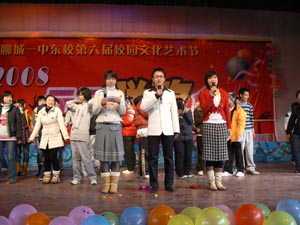 欢天喜地辞旧岁,载歌载舞迎新年。12月31日13:00,学校在礼堂举办了2008年元旦联欢会。学校党委副书记李荣军、副校长武建功、徐继胜及中层领导张加龙、蒋光健等观看了节目。 彩灯闪烁,气球飘动,舞台上下处处洋溢着喜庆气氛。联欢会在舞蹈《快乐崇拜》中拉开帷幕,整个联欢会高潮迭起,精彩不断,无论是歌曲、相声、、搏击操、手语表演等都博得了大家热烈的掌声,尤其是学生自编自演的小品《墨攻》和手语表演《感恩的心》几度掀起汇演的高潮,在博得大家阵阵热烈掌声的同时,引人深思。而老师们带来的歌曲更是将联欢会一次又一次推上高潮的浪尖。文艺汇演浓缩的17个节目全部由政教处主任张加龙带领政教处及各年级组的老师进行编排的。期间,徐继胜校长多次到现场给予慰问与指导。这些节目展示了我校师生的才华与心血,展现了我校师生朝气蓬勃、锐意进取的精神面貌。