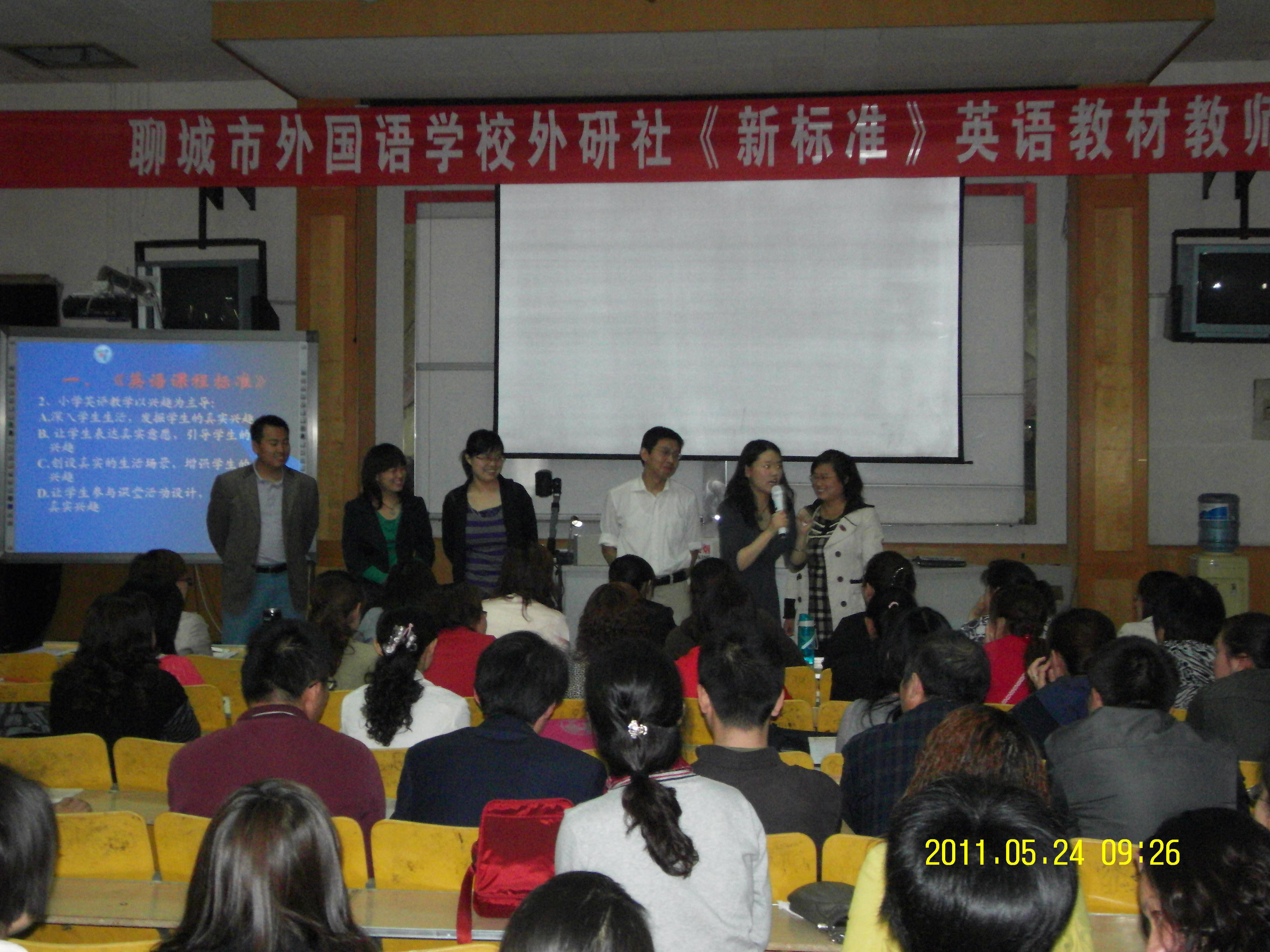 2011年5月24日,北京外国语大学副教授、外研社金牌培训师李玮博士在我校五楼多媒体教室对我校及聊城一中、文轩中学的英语教师进行了《新标准》英语教材培训